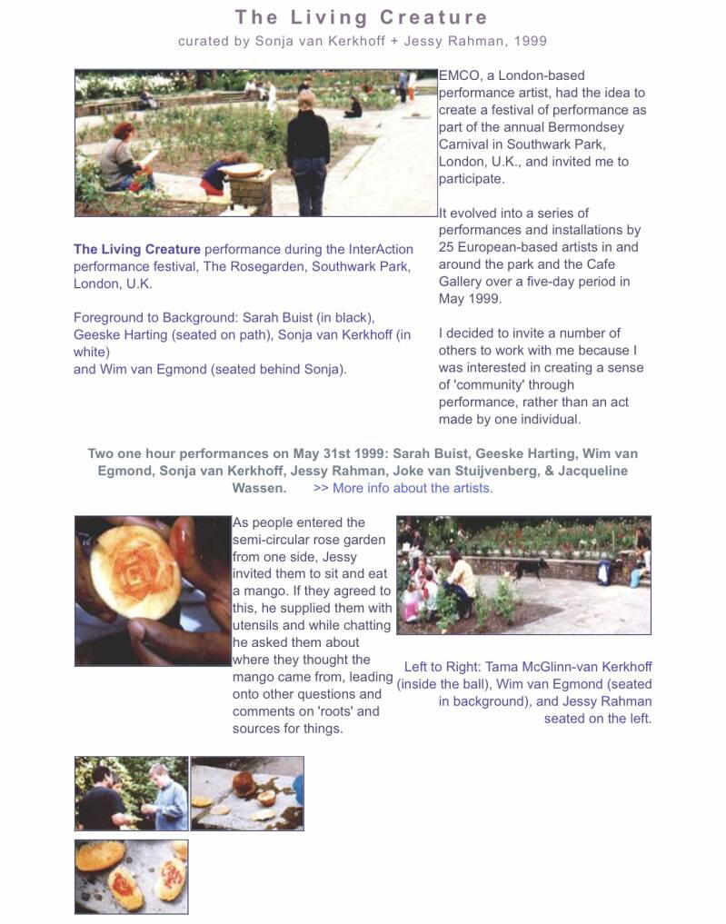 The Living Creature (curated by Sonja van Kerkhoff & Jessy Rahman) part of the InterAction Performance Festival 1999,