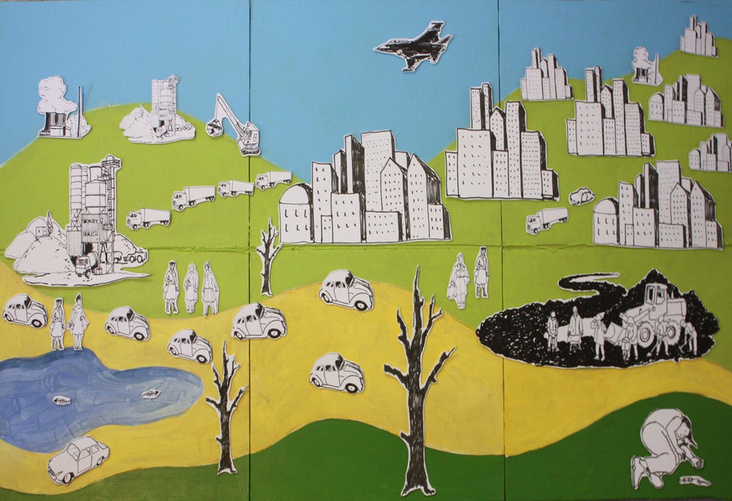 MAGNETICA create or destroy your world in a sec!!! Bordspel met magnetische borden en dito figuren, acrylverf, Oost-Indische inkt, karton, papier, magnetische vellen, 2014, groepsexpositie “The Second explodes”, Lana Artcentre, Italië.